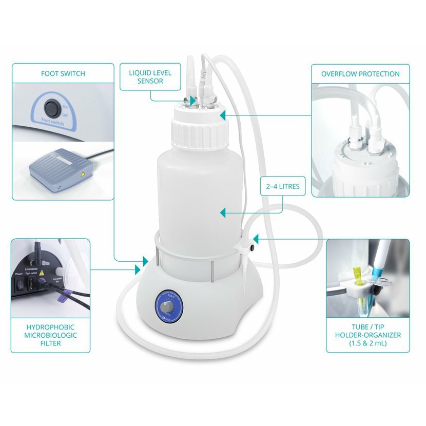 Vakuový aspirační systém FTA-U je výkonný, ergonomický a odolný stolní vakuový systém určený pro zlepšení manipulace s kapalným odpadem v náročných laboratorních prostředích, včetně výzkumu, klinické diagnostiky, farmaceutických laboratoří kontroly kvality a dalších. Řeší běžné laboratorní problémy, jako je nekonzistentní manuální aspirace, rizika kontaminace biologickým nebezpečím, manipulace s viskózními kapalinami a ergonomická zátěž při opakujících se úkonech.