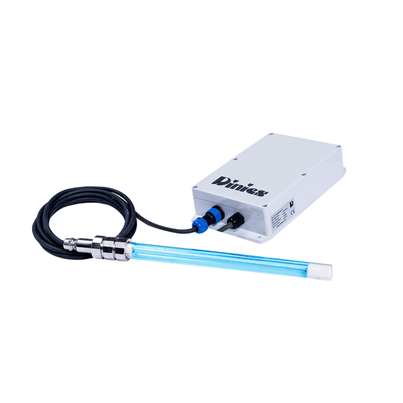 UV-C výkon 4,9 W, instalační délka 267 mm, životnost UV-C trubic 8.000 hodin, bez alarmu, IP68.