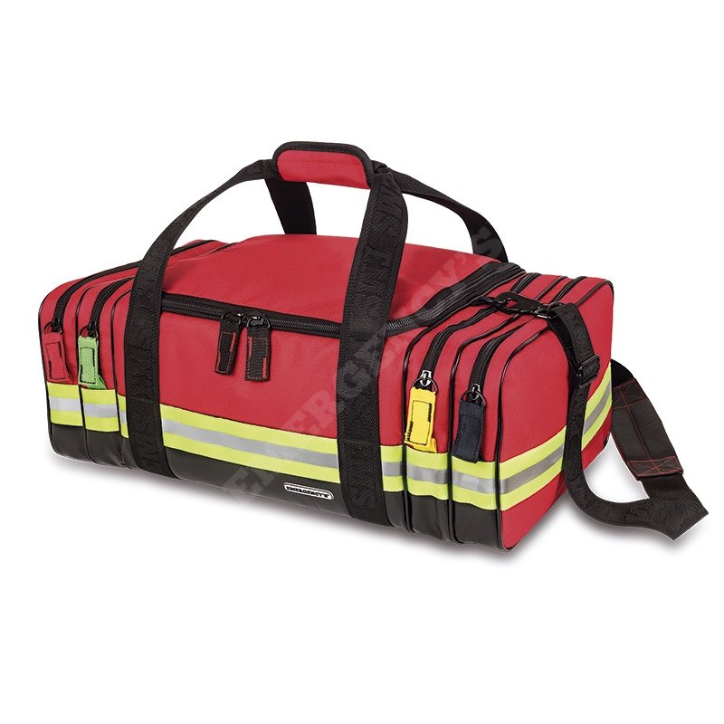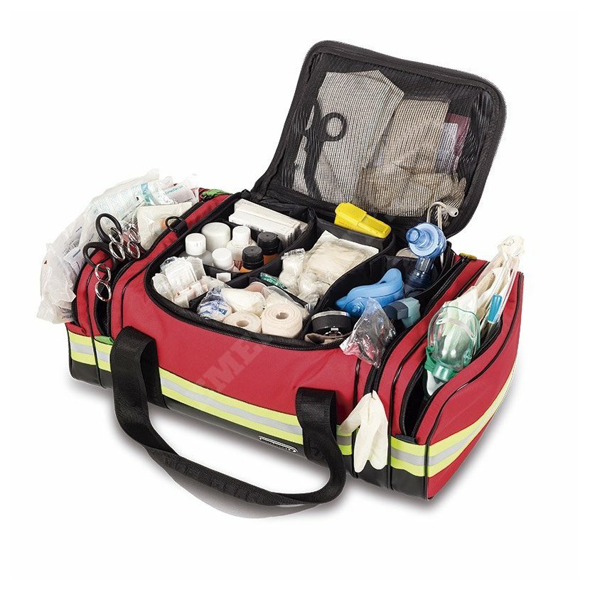 Má také 4 boční kapsy na zip, dvě na každé straně, řádně identifikované barevným kódem a vyvinuté pro nezávislé uložení veškerého dýchacího, oběhového, chirurgického a pediatrického materiálu.