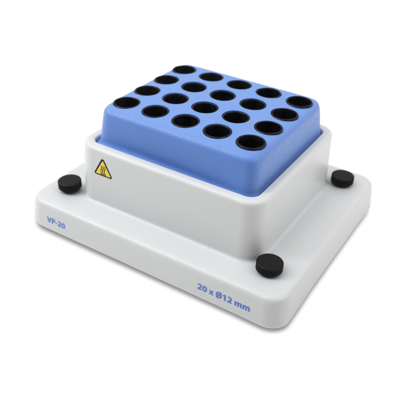 Blok pro 20 zkumavek s kulatým dnem o Ø 12 mm.